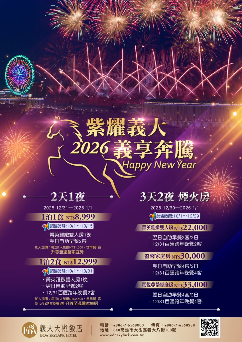 【義大天悅飯店】《紫耀義大 義享奔騰》跨年住房專案