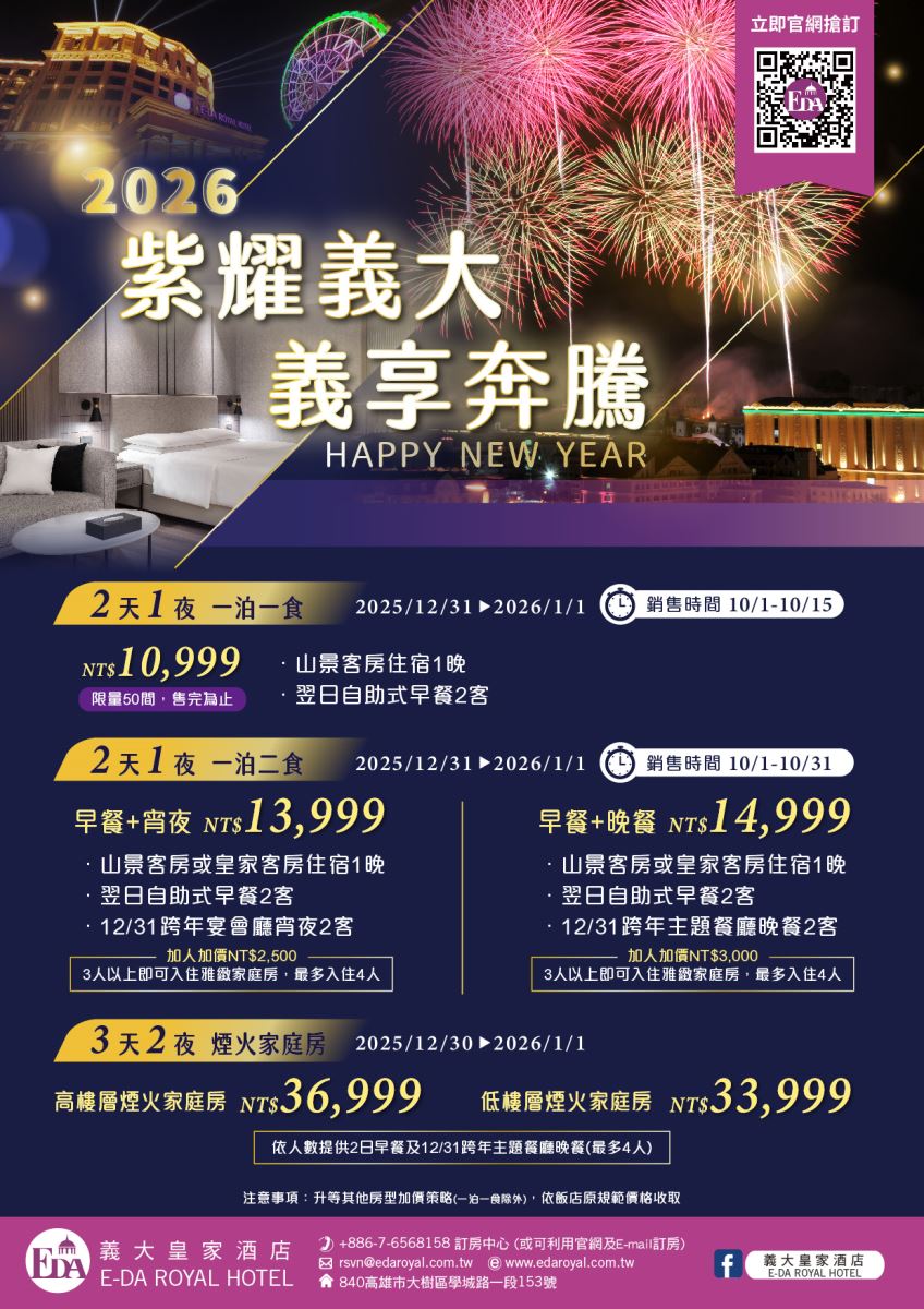 【義大皇家酒店】「紫耀義大 義享奔騰」跨年住房專案